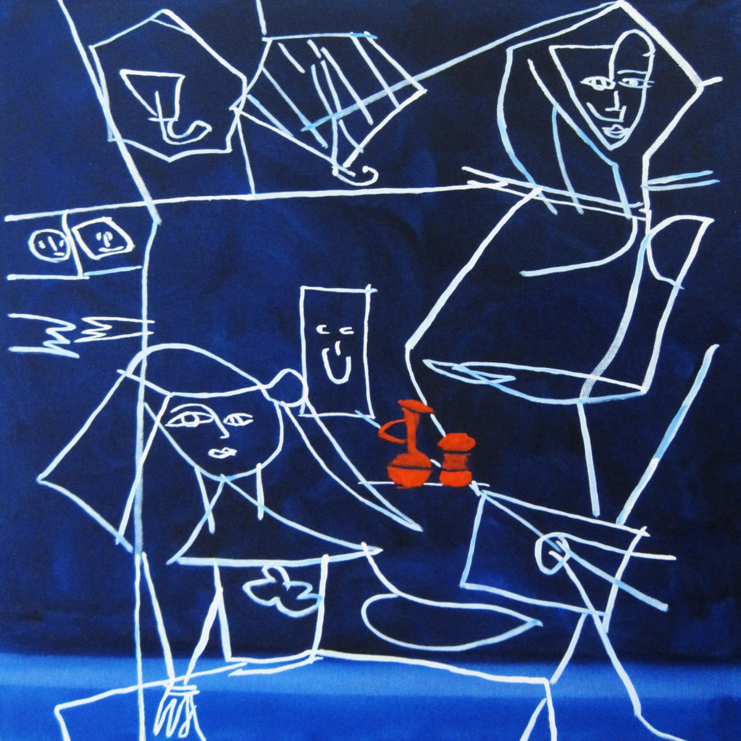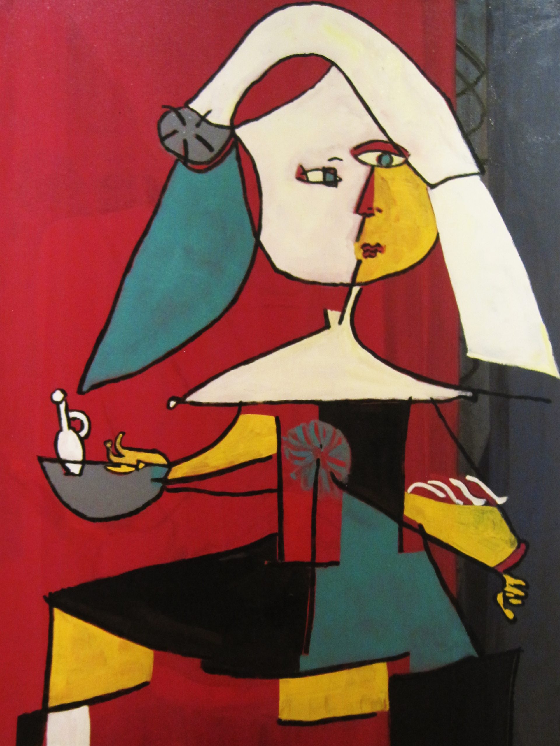 Maleri af Bentemarie Kjeldbæk – Las meninas med rød kande, 110×90 cm