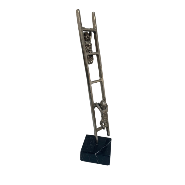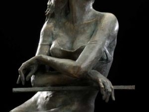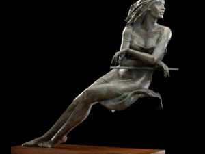 Skulpturen er 33 cm høj og basen måler 7 x 7 cm.